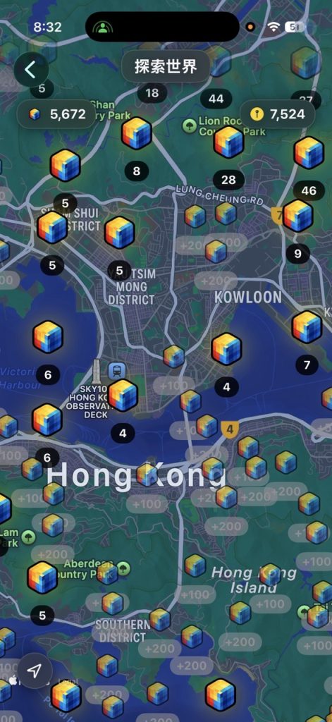 透过于世界地图上随机洒下的像素晶石直接兑换,或以 Apple Fitness 步数能量兑换像素晶石。